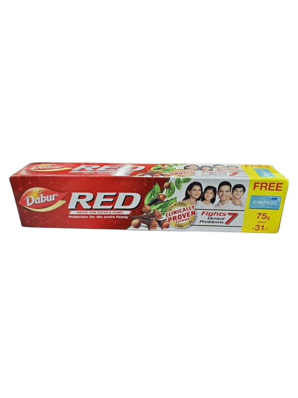 Dabur Red Toothpaste Keep your teeth healthy and strong with Dabur Red Toothpaste, enriched with natural herbal ingredients. Known for its effective protection against cavities, plaque, and gum problems, it promotes overall oral hygiene while leaving your mouth feeling fresh. Trusted for generations, Dabur Red combines the goodness of nature with modern dental care for a confident smile every day.