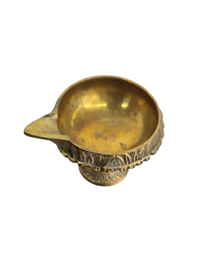 Bring a touch of timeless spirituality to your home with this beautifully handcrafted brass diya. Made from high-quality solid brass, it features a smooth round bowl with an extended spout for easy lighting and a decorative carved base that adds elegance and stability.Perfect for daily puja, festivals, aarti rituals, and home décor, this diya creates a warm and serene glow. Its durable brass material ensures long-lasting shine and purity, making it an ideal addition to your mandir or gifting collection.