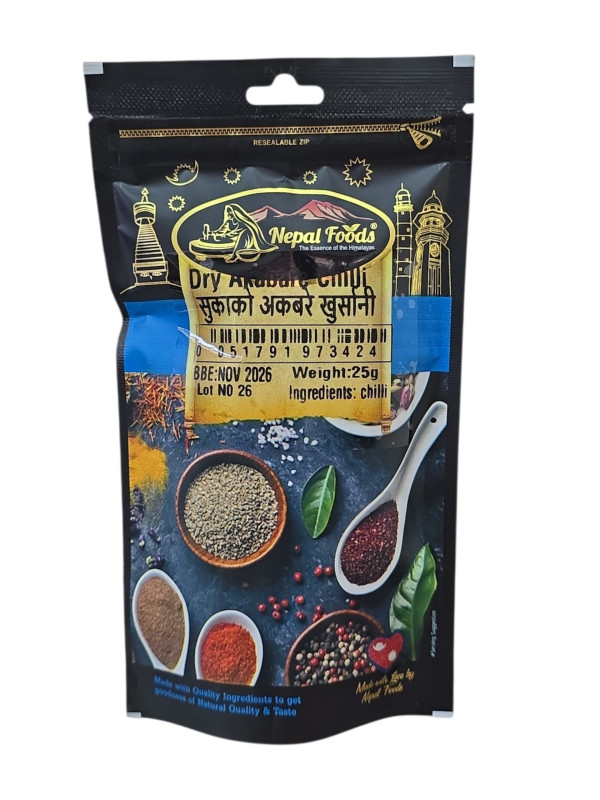 Authentic Nepali Akabare chillies, carefully dried to preserve their intense heat and rich aroma. Perfect for adding bold spice to pickles, curries, chutneys, and traditional dishes. Hygienically packed for long-lasting freshness and powerful flavor.