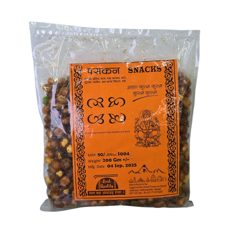Enjoy the authentic taste of Nepal with Paskan Snacks, a crunchy mix of roasted and seasoned beans. Packed with flavor and perfect for tea time or quick snacking, this traditional Nepali treat delivers a delicious blend of spice, crunch, and aroma.