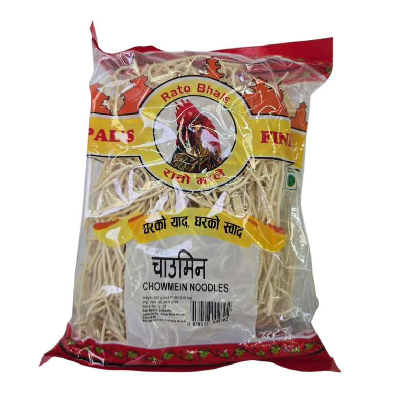 Enjoy authentic Nepali-style chowmein with Rato Bhale Chowmein Noodles. These thin, fresh-tasting noodles cook quickly and blend perfectly with vegetables, sauces, and spices. Ideal for making restaurant-style chowmein right at home. Fresh flavor, great texture, and trusted quality in every pack.