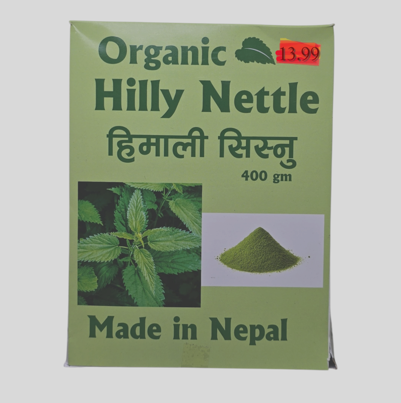 Organic Hilly Nettle Powder – 400g (Made in Nepal) Discover the natural goodness of Organic Hilly Nettle, a traditional Himalayan superfood known for its rich nutritional profile and wellness benefits. Sourced from the pristine hills of Nepal, this finely ground nettle powder is 100% organic and naturally processed to preserve its purity and potency